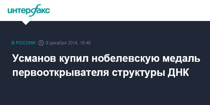 Усманов купил нобелевскую медаль первооткрывателя структуры ДНК