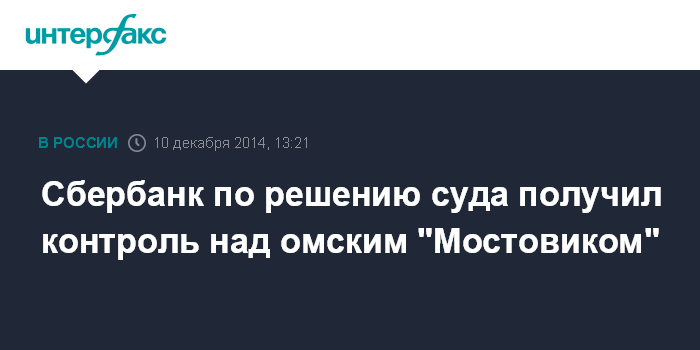 Сбербанк по решению суда получил контроль над омским "Мостовиком"