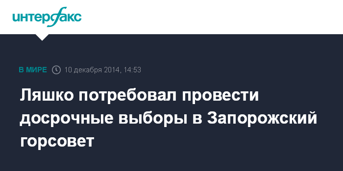 Москва. 10 декабря. INTERFAX.RU - Народный депутат Украины, лидер Радикальной партии Олег Ляшко намерен внести в Верховную Раду законопроект о досрочных выборах Запорожского городского совета.