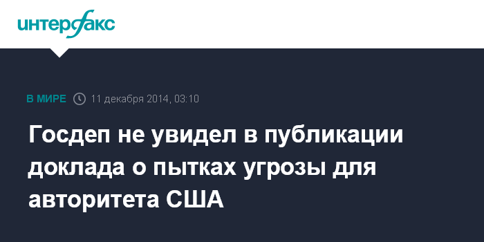 Москва. 11 декабря. INTERFAX.RU - Доклад сената США о жестких методах допроса, применявшихся ЦРУ в отношении предполагаемых террористов, не стал ударом по моральному авторитету Вашингтона. Об этом заявила представитель Госдепа Джен Псаки.