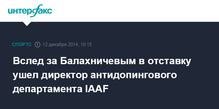 Вслед за Балахничевым в отставку ушел директор антидопингового департамента IAAF