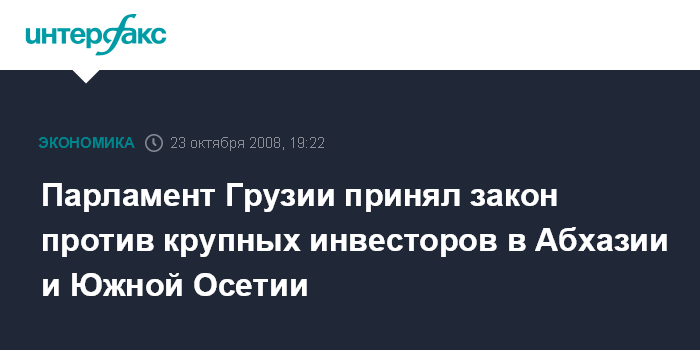 Москва. 23 октября. INTERFAX.RU - Парламент Грузии на пленарном заседании в четверг принял в третьем чтении законопроект "Об оккупированных территориях".