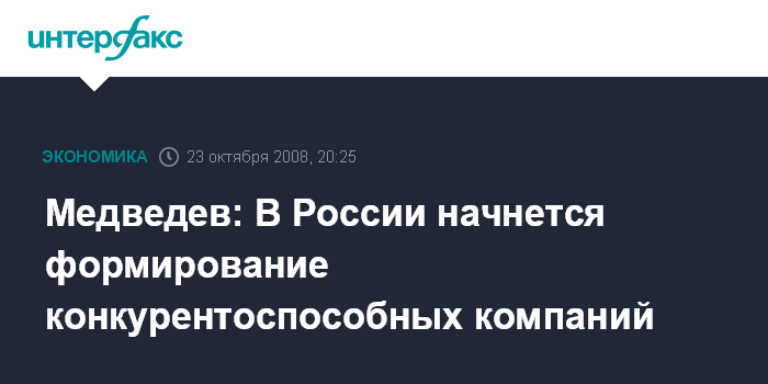 Медведев: В России начнется формирование конкурентоспособных компаний