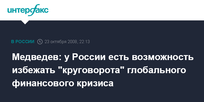 Медведев: у России есть возможность избежать "круговорота" глобального финансового кризиса