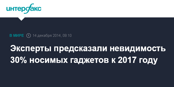 Москва. 14 декабря. INTERFAX.RU - Порядка 30% "умных" носимых устройств к 2017 году будут полностью невидимыми для глаза, прогнозируют эксперты исследовательской организации Gartner Inc.