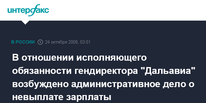 В отношении исполняющего обязанности гендиректора "Дальавиа" возбуждено административное дело о невыплате зарплаты
