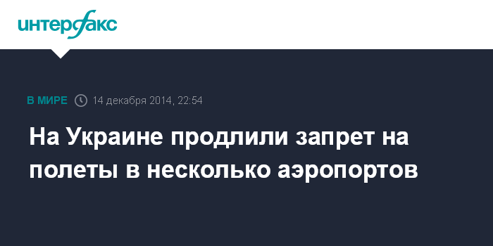Москва. 14 декабря. INTERFAX.RU - Государственная авиационная служба Украины продлила введенный с 00:00 13 декабря запрет на полеты в аэропорты Харькова, Днепропетровска и Запорожья до утра вторника, 16 декабря.