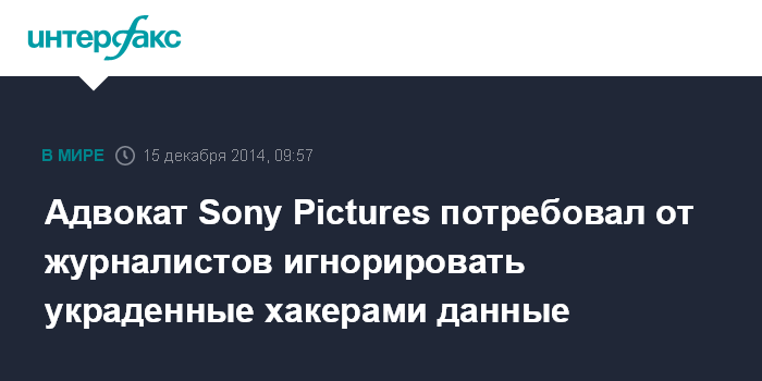 Адвокат Sony Pictures потребовал от журналистов игнорировать украденные хакерами данные
