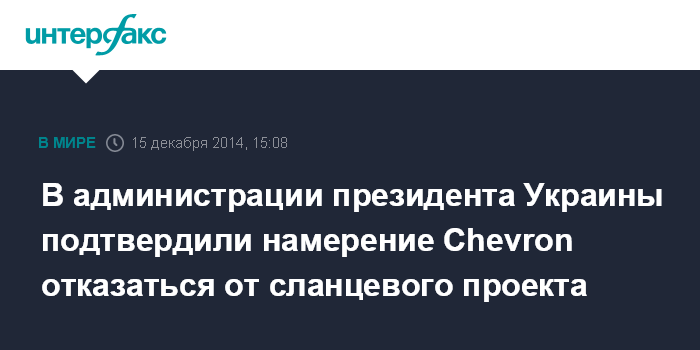 В администрации президента Украины подтвердили намерение Chevron отказаться от сланцевого проекта