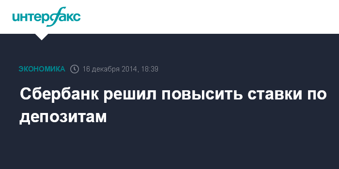 Москва. 16 декабря. INTERFAX.RU - Сбербанк планирует повысить ставки по розничным и корпоративным депозитам, сообщается в обзоре ФК "Открытие" со ссылкой на информацию, полученную на встрече менеджмента Сбербанка с аналитиками.