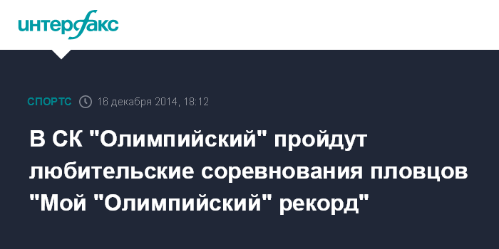 Москва. 16 декабря. INTERFAX.RU - В московском спортивном комплексе "Олимпийский" 21 декабря пройдут традиционные любительские соревнования по плаванию - "Мой "Олимпийский" рекорд".