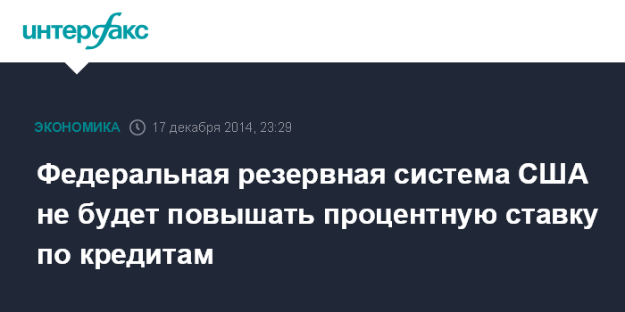 Федеральная резервная система США не будет повышать процентную ставку по кредитам