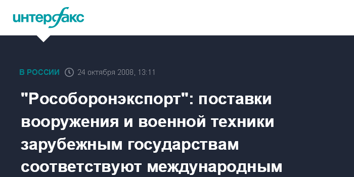 "Рособоронэкспорт": поставки вооружения и военной техники зарубежным государствам соответствуют международным нормам