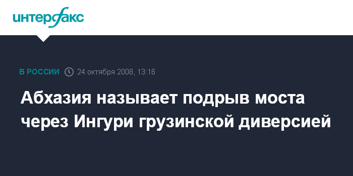Москва. 24 октября. INTERFAX.RU - Подрыв железнодорожного моста через реку Ингури в зоне безопасности на грузино-абхазской границе является очередным диверсионным актом Грузии, считает министр обороны Абхазии Мираб Кишмария.