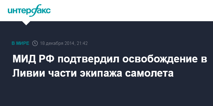 Как сообщалось, экипаж самолета, который перевозил гуманитарный груз, был задержан 13 ноября 2014 года в Гадамес на западе Ливии.