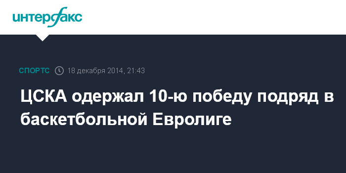 ЦСКА одержал 10-ю победу подряд в баскетбольной Евролиге