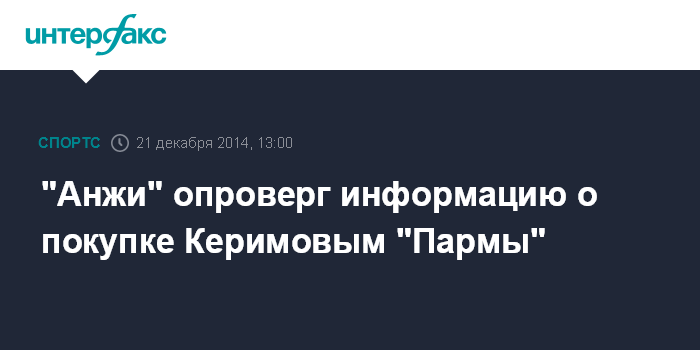 Москва. 21 декабря. INTERFAX.RU - Махачкалинский ФК "Анжи" выступил с опровержением сведений о том, что владелец клуба Сулейман Керимов приобрел итальянскую "Парму".