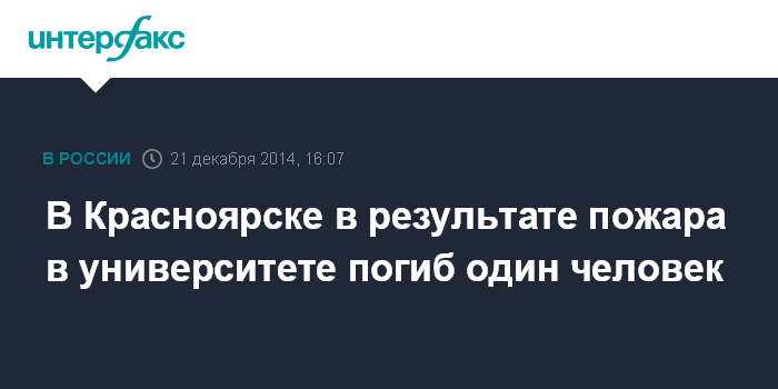 Москва. 21 декабря. INTERFAX.RU - На месте пожара в Красноярском государственном аграрном университете обнаружен погибший, сообщили "Интерфаксу" в пресс-службе ГУ МВД России по Красноярскому краю в воскресенье.