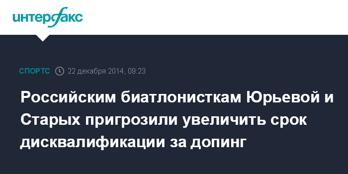 Российским биатлонисткам Юрьевой и Старых пригрозили увеличить срок дисквалификации за допинг