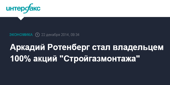 Таким образом, Аркадий Ротенберг стал владельцем 100% акций компании "Стройгазмонтаж".