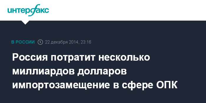 Россия потратит несколько миллиардов долларов импортозамещение в сфере ОПК