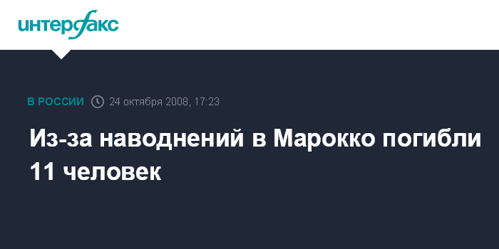 Рабат. 24 октября. INTERFAX.RU - Сильные наводнения на северо-востоке Марокко привели к гибели не менее 11 человек, говорится в коммюнике, опубликованном министерством внутренних дел страны.