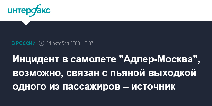 Инцидент в самолете "Адлер-Москва", возможно, связан с пьяной выходкой одного из пассажиров – источник