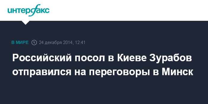 Москва. 24 декабря. INTERFAX.RU - Посол России на Украине Михаил Зурабов отбыл в Минск для участия во встрече трехсторонней группы по мирному урегулированию ситуации в Донбассе.