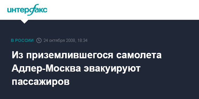Москва. 24 октября. INTERFAX.RU - В настоящее время из самолета Адлер-Москва, приземлившегося во Внуково, проводится эвакуация пассажиров, сообщил представитель ФСБ РФ.