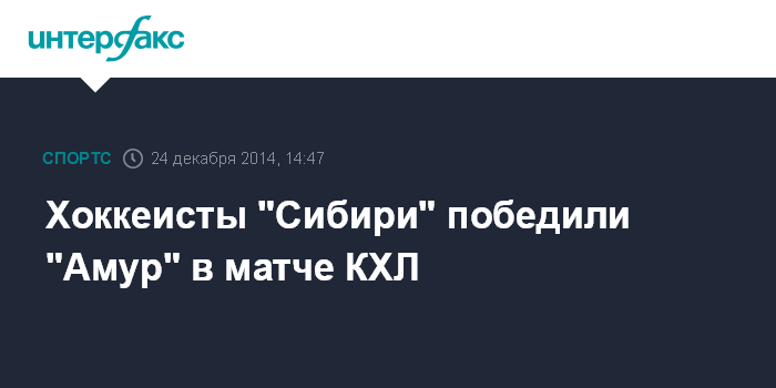 Москва. 24 декабря. INTERFAX.RU - Хабаровский хоккейный клуб "Амур" потерпел неудачу в домашнем матче против новосибирской "Сибири", прошедшем в рамках очередного тура чемпионата КХЛ.