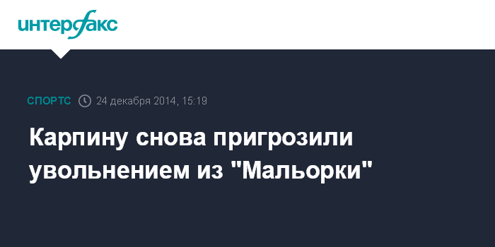 Отмечается, что руководство клуба недовольно последними результатами команды: она не может выиграть уже на протяжении шести матчей (по три ничьи и поражения). 3 января "Мальорка" встречается с "Альбасете", и этот матч, по информации источника, может стать судьбоносным для российского специалиста - в случае неудачи Карпин может быть отправлен в отставку.