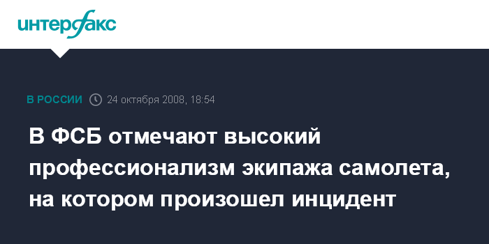 В ФСБ отмечают высокий профессионализм экипажа самолета, на котором произошел инцидент