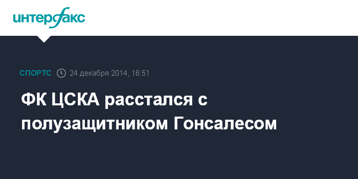Москва. 24 декабря. INTERFAX.RU - Московский футбольный клуб ЦСКА объявил об уходе из команды полузащитника Марка Гонсалеса.