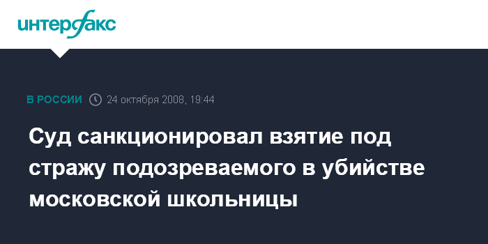 Москва. 24 октября. INTERFAX.RU - Замоскворецкий суд Москвы выдал санкцию на арест подозреваемого в убийстве 15-летней московской школьницы Анны Бешновой.