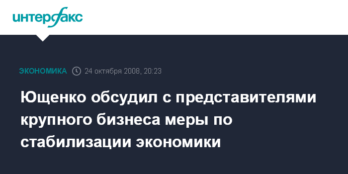 Москва. 24 октября. INTERFAX.RU - Президент Украины Виктор Ющенко обсудил с представителями крупного национального бизнеса меры по стабилизации украинской экономики и минимизации влияния на нее мирового финансового кризиса, сообщает пресс-служба главы государства.