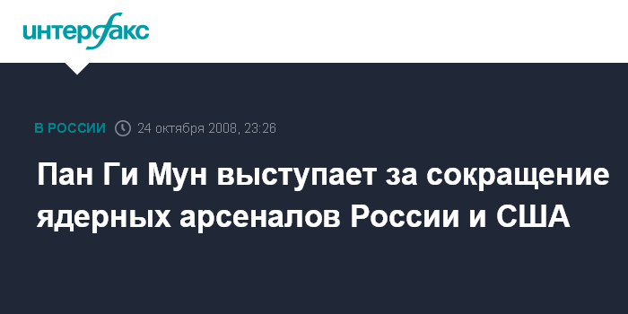 Нью-Йорк (ООН). 24 октября. ИНТЕРФАКС - Генеральный секретарь ООН Пан Ги Мун заявил в пятницу, что поддерживает идею возобновления переговоров между Россией и США по поводу сокращения их ядерных арсеналов.