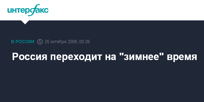 В связи с этим стрелки часов на всей территории РФ в 3 часа ночи 26 октября 2008 года (по местному времени) переводятся на один час назад.