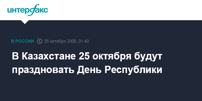 День Республики является государственным праздником и отмечается ежегодно 25 октября. Этот день в Казахстане является нерабочим днем.