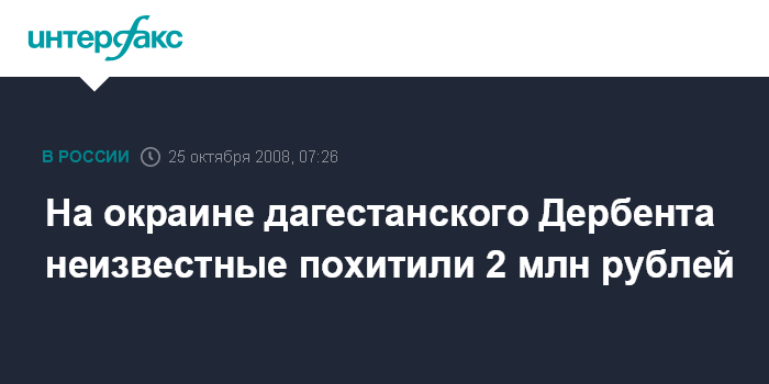 На окраине дагестанского Дербента неизвестные похитили 2 млн рублей