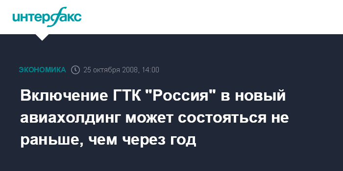 Включение ГТК "Россия" в новый авиахолдинг может состояться не раньше, чем через год