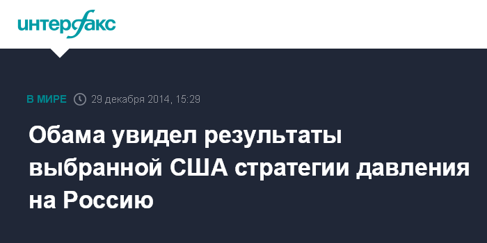 Москва. 29 декабря. INTERFAX.RU - Применяемая Вашингтоном тактика оказания непрерывного давления на Россию, чтобы изменить ее позицию по украинскому кризису, верна и дает свои плоды, заявил президент США Барак Обама.