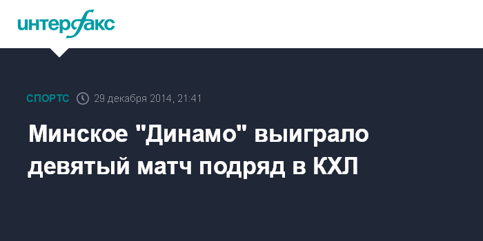 Минское "Динамо" выиграло девятый матч подряд в КХЛ