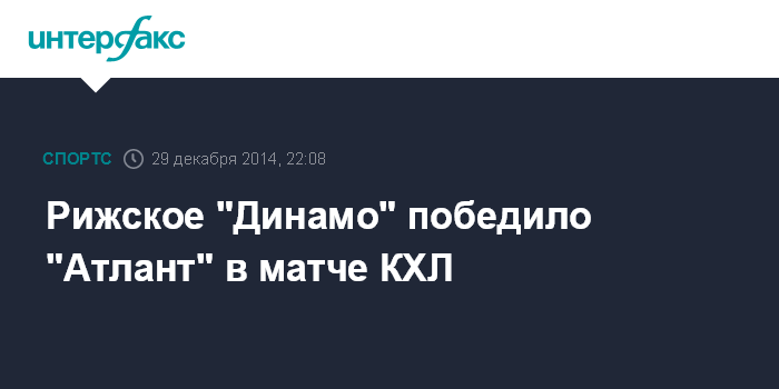 Москва. 29 декабря. INTERFAX.RU - В матче очередного тура регулярного чемпионата КХЛ подмосковный "Атлант" на своем льду уступил рижскому "Динамо".