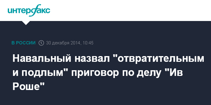 Москва. 30 декабря. INTERFAX.RU - Алексей Навальный прокомментировал приговор Замоскворецкого суда по делу "Ив Роше". По мнению оппозиционера, реальный срок наказания в отношении его брата Олега, которого суд постановил взять под стражу в зале суда, является дополнительным наказанием для него самого.