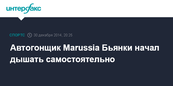 Автогонщик Marussia Бьянки начал дышать самостоятельно