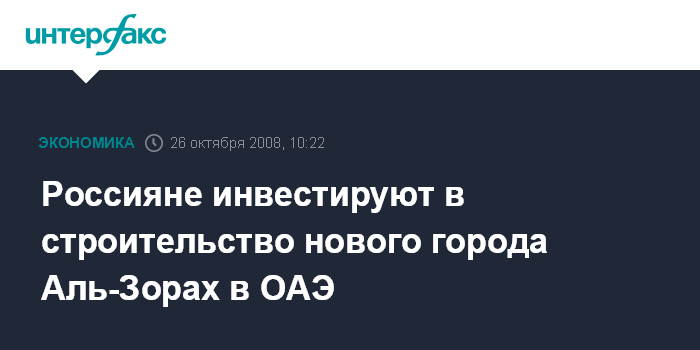 Россияне инвестируют в строительство нового города Аль-Зорах в ОАЭ