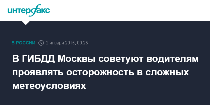 В ГИБДД Москвы советуют водителям проявлять осторожность в сложных метеоусловиях