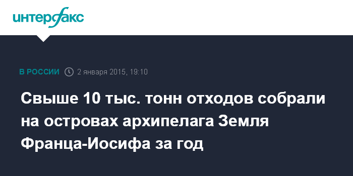 Москва. 2 января. INTERFAX.RU - В 2014 году с островов архипелага Земля Франца-Иосифа (ЗФИ) было собрано более 10 тыс. тонн отходов производства и потребления, сообщила пресс-служба национального парка "Русская Арктика".