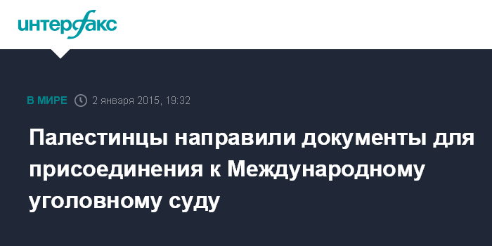 Москва. 2 января. INTERFAX.RU - Палестинские дипломаты в пятницу направили запрос о присоединении к Международному уголовному суду, сообщает агентство АП.
