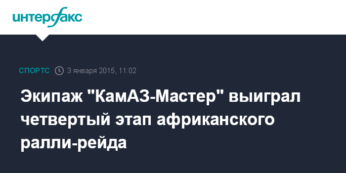 Экипаж "КамАЗ-Мастер" выиграл четвертый этап африканского ралли-рейда